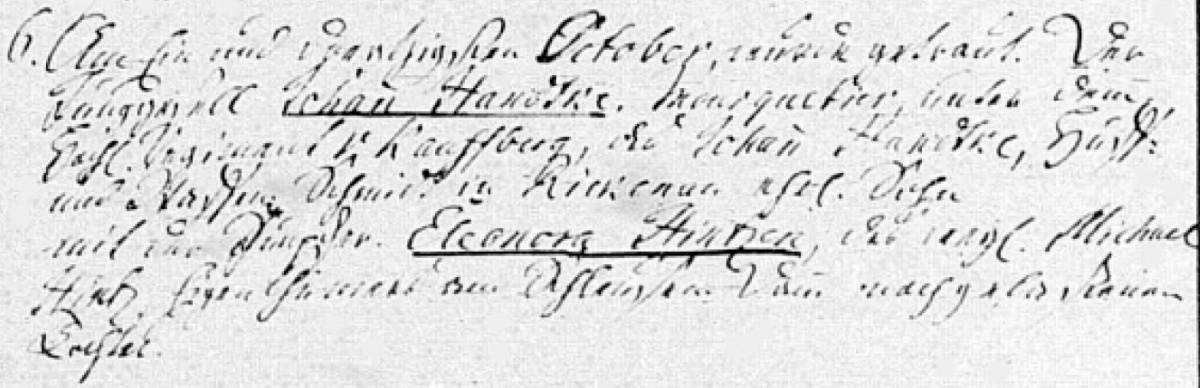 mit der Jungfer Eleonora Hintzen, des seel. (?) Michael