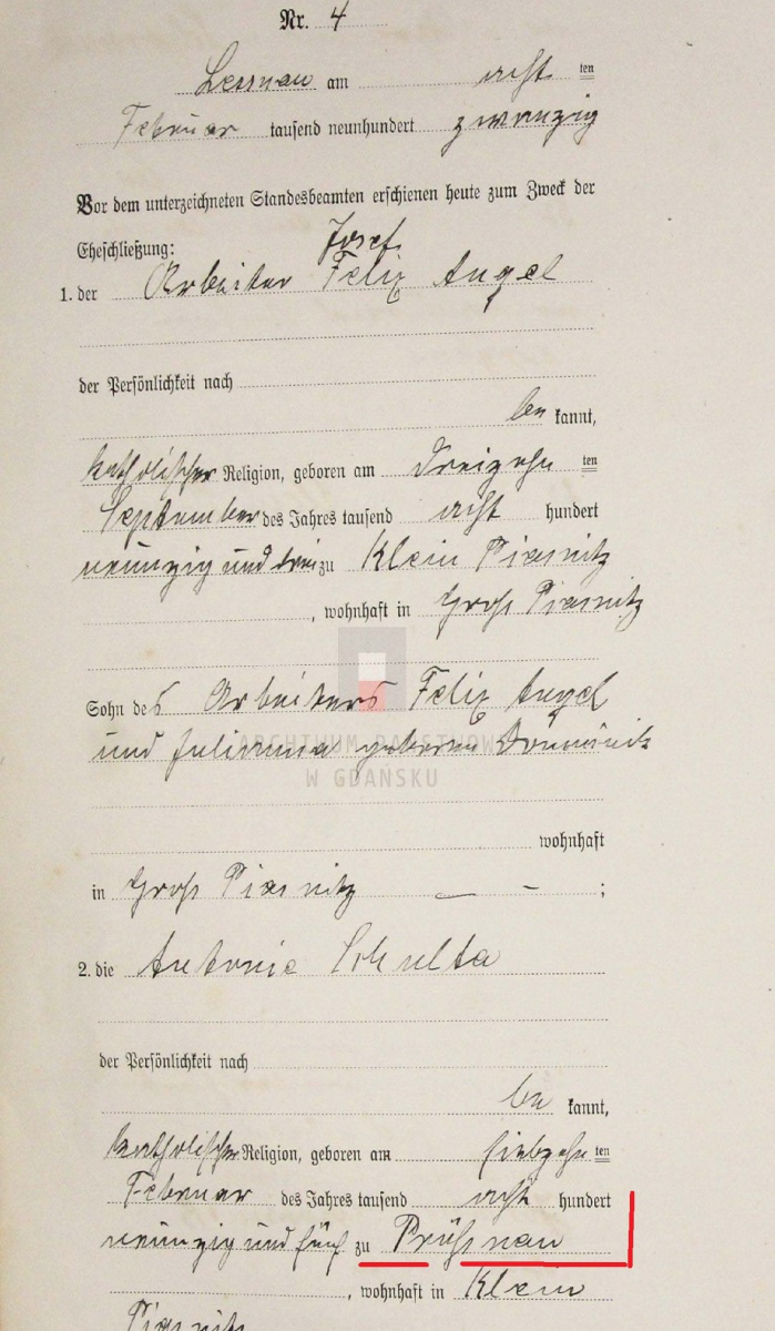 Ausschnitt aus einer Sterbeurkunde vom Standesamt Lessnau (Leśniewo).