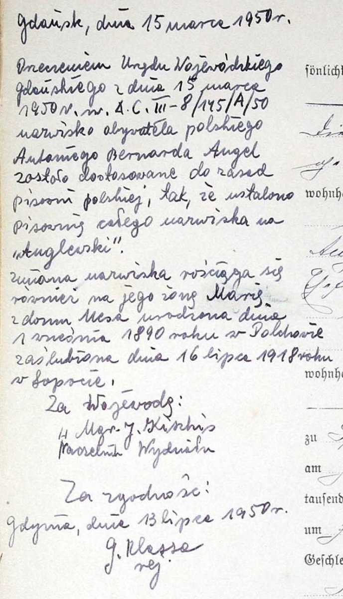 Eine Randbemerkung in polnischer Sprache, die vom Standesamt Danzig
