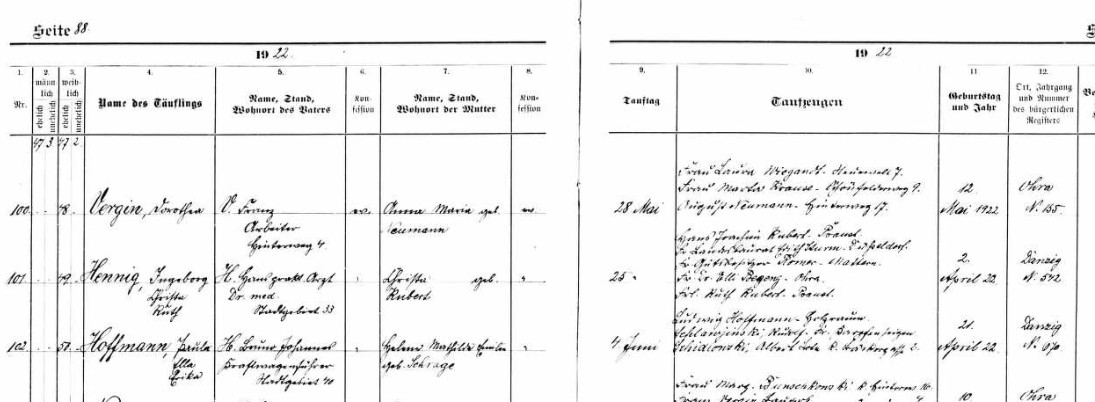 ich benötige mal wieder Hilfe von Euch netten Schriftenversteher. Durch Peters Link bzgl. Hans Waldemar Hennig konnte ich doch tatsächlich wieder bei Ancestry Neues erfahren. Nun habe ich auch den Mädchennamen seiner Frau und weiß, das er mind. eine Tochter hatte. Ich kann allerdings nicht alles korrekt lesen, obwohl die Schrift deutlich ist, meine ich jedenfalls.