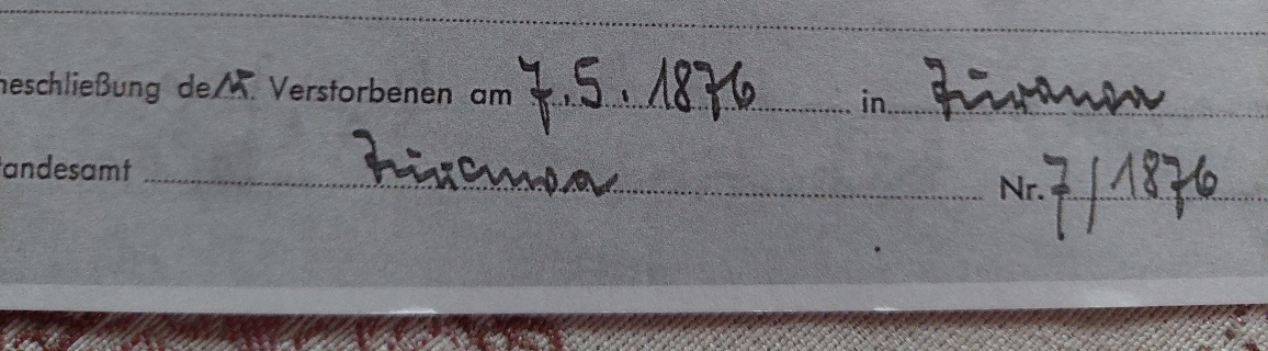 Unten auf der Urkunde wird nur noch der nicht zu entziffernde Ort genannt. Ich habe im Internet nachgeschaut. Nur einen Ort mit Zü gefunden. Der ist es nicht. Ich lese jedenfalls am Anfang Zu... oder Zü.
