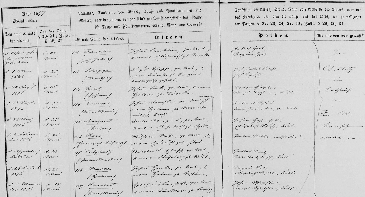 118. geb. 26.12.1876, Taufe 25.05.1878, Hanke (Elisabeth)