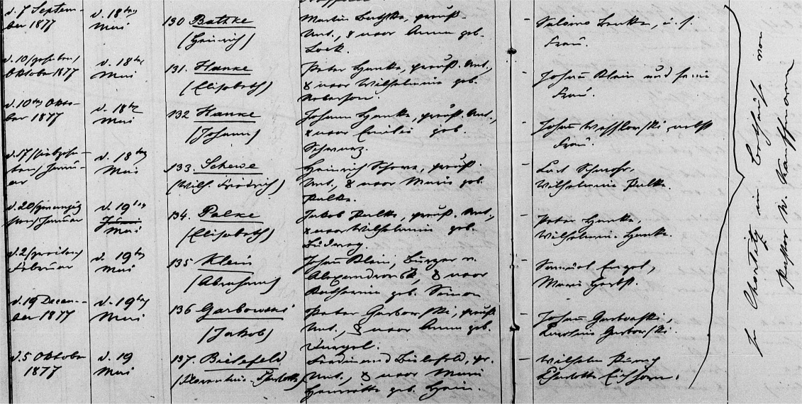 132. geb. 10.10.1877, Taufe 18.05.1878, Hanke (Johann)