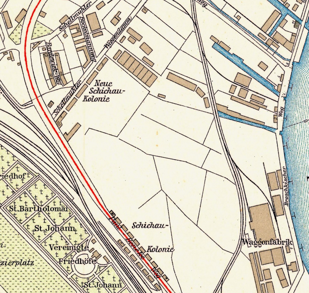 "Schichaugasse" Stadtteil, Stadtgebiet ,"Neue Schichaukolonie" Stadtteil Langfuhr, aber nicht die die "Alte Schichauerkolonie".