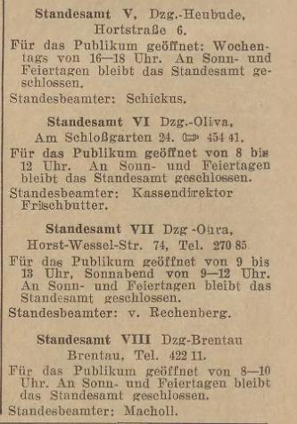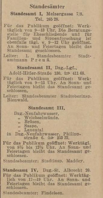 Gibt es heute noch ein Standesamt in Langfuhr und wie ist die Adresse??