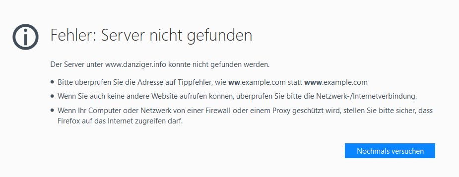Nachdem ich mich im letzten Monat dazu bereit erklärte, den "Bund der Danziger" ehrenamtlich zu unterstützen, hatte ich mich gestern an die Internetpräsenz gewagt. Nach einer etwas längeren Vertiefungsphase lag es auf der Hand, den bisherigen Hostinganbieter in´s Jenseits zu befördern. Und heute ist die Homepage www.danziger.info wieder vollumfänglich sowie in aktualisierter Form erreichbar.