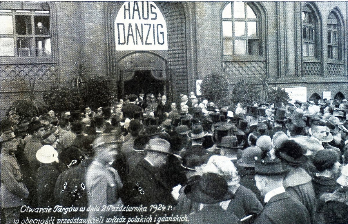 eine weitere auf der Ansichtkartenaustellung bei der Polnisch-Deutschen Gesellschaft in Danzig gezeigte Karte ist eine polnische Werbepostkarte, die auf die "III. Gdańskie Międzynarodowe Targi" (III. Danziger Internationaler Messe) vom 05.-08.02.1925 hinweist. Die Bildseite der Karte zeigt die Eröffnung einer Messe am 02.10.1924.