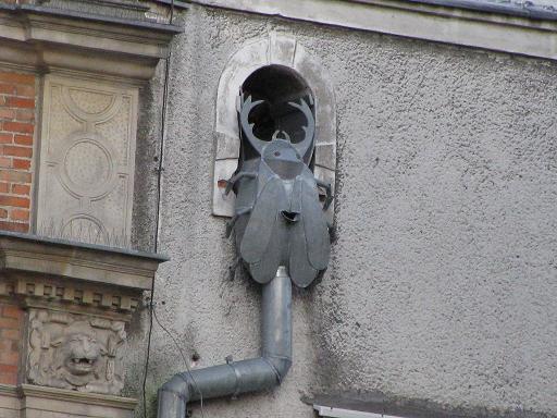 vielen Dank für die Bilder. Sehen echt urig aus, die Figuren. Scheinbar gab es mehrere Wasserabführmöglichkeiten nebeneinander. Die Speier konnten also weiter oben liegen in Giebelnähe oder weiter unten in Treppennähe. Habe ich das richtig verstanden? Bild 1 habe ich noch nicht ganz verstanden. Dieser Käfer (oder Fliege) speit Wasser und hat gleichzeitig ein Fallrohr? Weißt du noch in welcher Straße du diese Bilder gemacht hast?