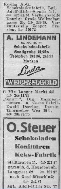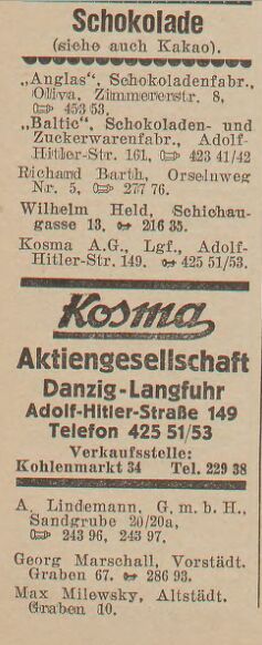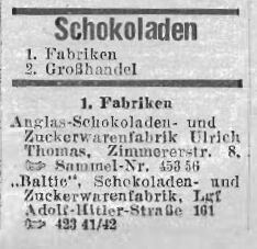 Es gab in Langfuhr ( Adolf - Hitlerstr. 161 ) die " Baltic " Schokoladen und Zuckerwarenfabrik.
