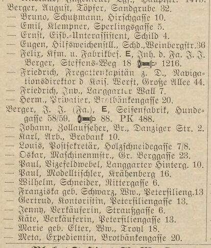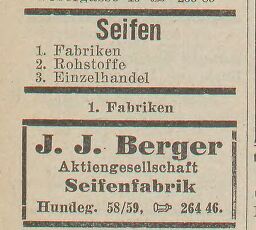 kann mir jemand etwas über den Werdegang der Danziger Firma J. J. Berger (Seifenfabrik) mitteilen ? Vermutlich geründet 1846 und mindestens bis in die 1930er Jahre vorhanden.