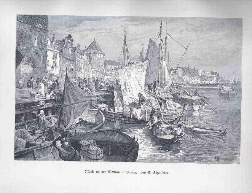 am Bollwerk lagen und mit Segeltuch überspant waren.