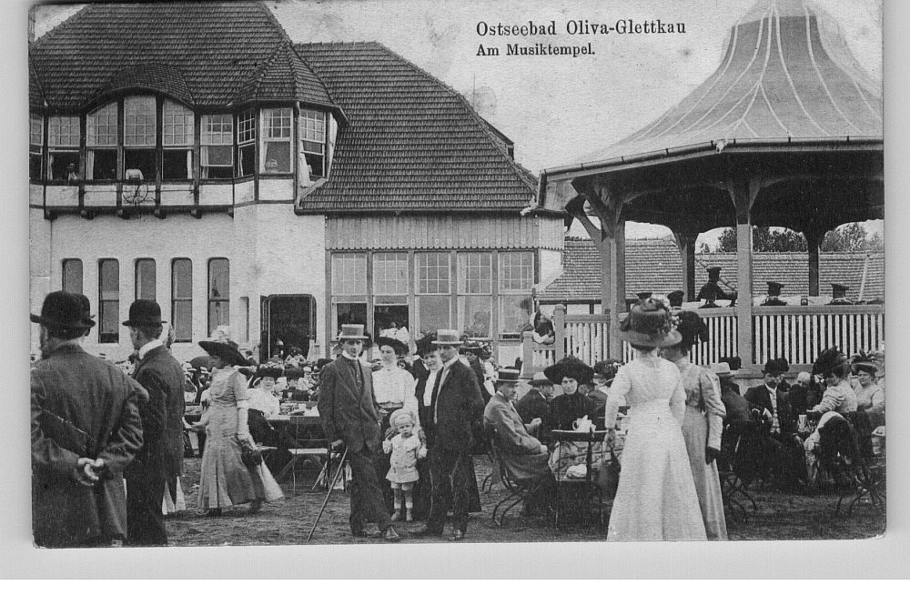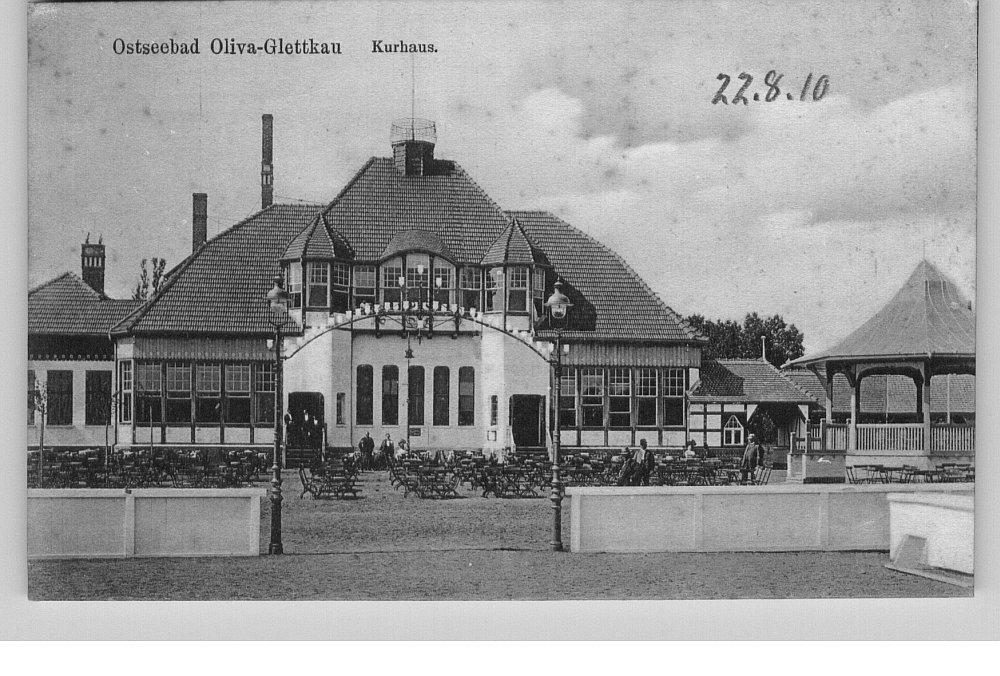 Ein besonders schönes Kurhaus, sieht wie Jugendstil aus. Steht es noch ?Obgleich ich als Kind 4 oder 5 Sommer lang immer in Glettkau mit meinen Eltern wohnte, kann ich mich leider an dieses Haus nicht mehr erinnern. Aber es gab jeden Sommer ein Kinderfest, wo wir Kindergartenkinder sangen und tanzten und auch mal etwas gewinnen konnten. Das kann dort gewesen sein auf einer Wiese.