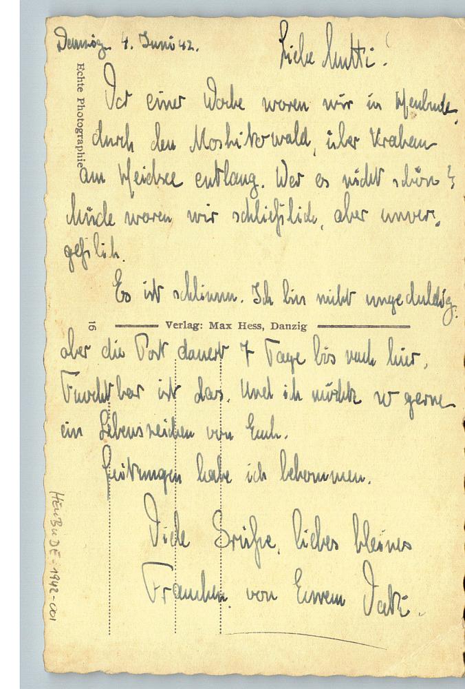 auf den Tag genau vor 70 Jahren, am 04.06.1942, schrieb ein Vater eine Ansichtskarte an seine Familie. Er teilte mit, er sei am "Moskitowald über Krakau am Heidsee" entlang gewesen.