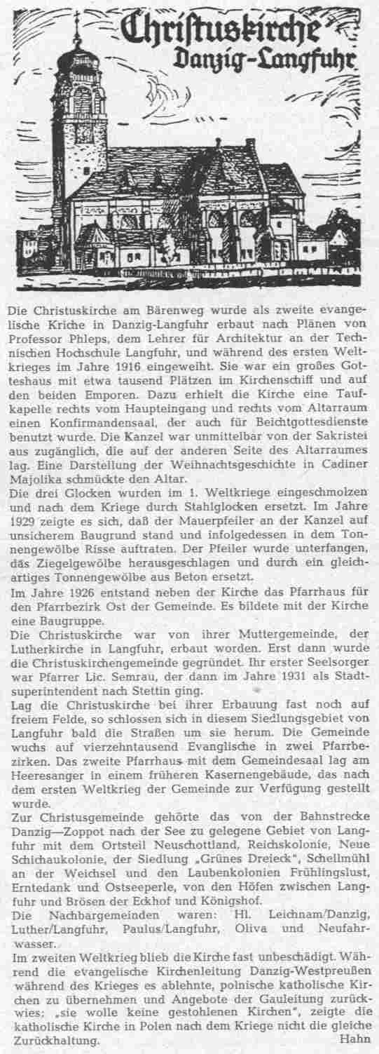 Als Dateianhang ein Bericht über die Christuskirche in Langfuhr, erschienen im Danzig-Westpreussischen Kirchenbrief Nr.55 vom Januar-Maerz 1961.