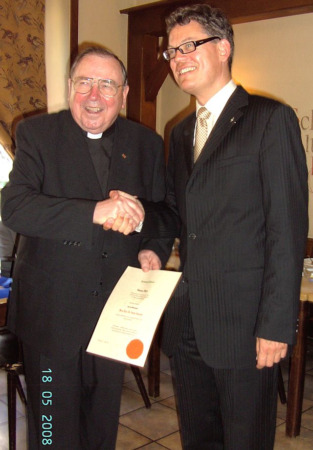 Im nächsten Jahr, wieder am Dreifaltigkeitssonntag das ist der Sonntag nach Pfingsten, findet wieder ein Gottesdienst statt. Wir waren dort und waren erstaunt, wie viele Danziger und Olivaner dort waren. Sie reisten aus der ganzen Bundesrepublik an. Wir waren fast 40 Teilnehmer beim Gottesdienst und am Ende gingen wir alle gemeinsam zum Grab des Bischof von Danzig, Msgr. Dr. Carl Maria Splett. Als Anlage sehen Sie den Ablauf der Vesperandacht. Anschließend trafen wir uns im Restaurant "Zum Goldenen Ring". Eine nette Runde im Kreise der Heimatfreunde.