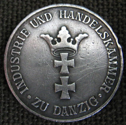 Hier einmal eine Danziger Industrie und Handelskammer Medaille in Silber aus meiner Sammlung. Leider fehlt die Oese und das Band.