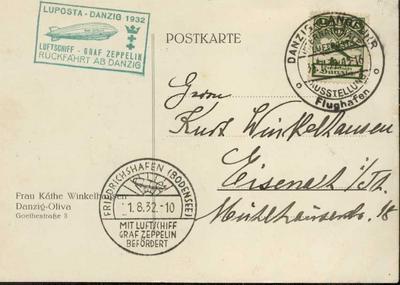 Der Zeppelin transportierte 1932 eine Postkarte von Friedrichshafen