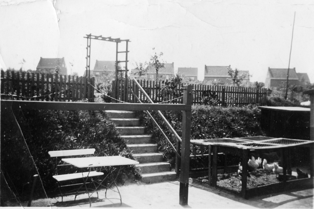 Fotografiert von Obergarten, im Hintergrund ist das Dach vom Haus zu sehen. Links mein Onkel, meine Oma und meine Mutter, ca. 1943 aufgenommen.