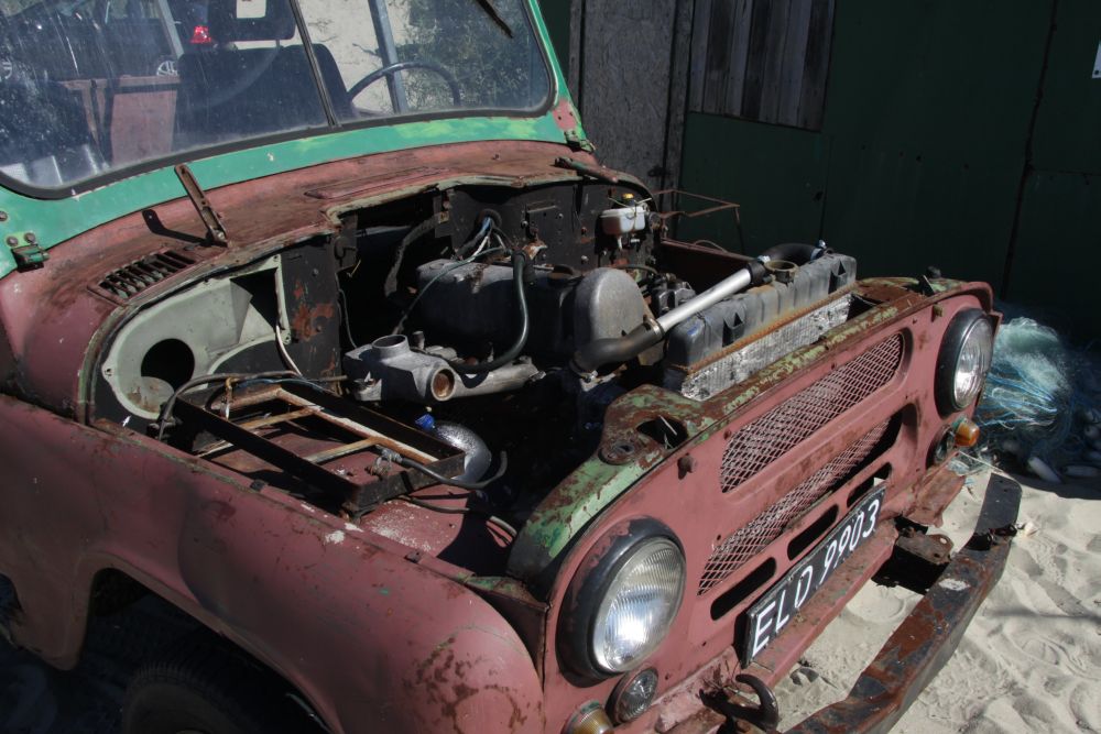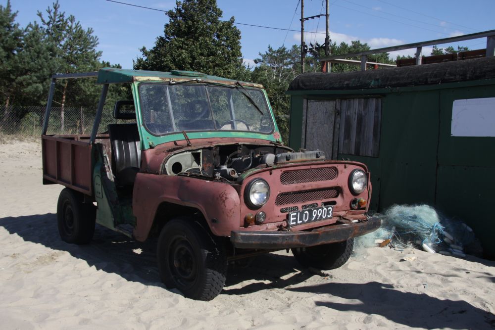 Meine zwei Besucher machten sich auf den Weg zur russischen Grenze. Man muss einfach mal vor dem Drahtzaun gestanden haben um dann den Irrsinn erst recht nicht zu begreifen. Ich lief noch ein wenig am traumhaft schönen Sandstrand entlang, genoss den warmen Spätsommernachmittag, schoss einige Fotos. Faszinierend war ein altes Fischerauto, ein Jeep, fast ausgeschlachtet und trotzdem noch in Betrieb.