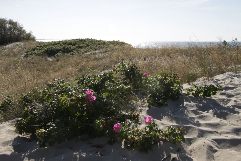 vorgestern war ich wieder in Neukrug. Zusammen mit meinem Sohn Martin und dessen Ehefrau fuhren wir ganz gemächlich die gut 50 Kilometer bis in den Neukruger Dünenwald. Es war eine wunderschöne Fahrt, langsam, mit einem Kurzaufenthalt am Haffsandstrand wo wir hinüberblicken konnten nach Frauenburg und Braunsberg. Intensiv orangefarben leuchtender Schlehdorn lud dazu ein, die saftigen Beeren zu pflücken und zu genießen.