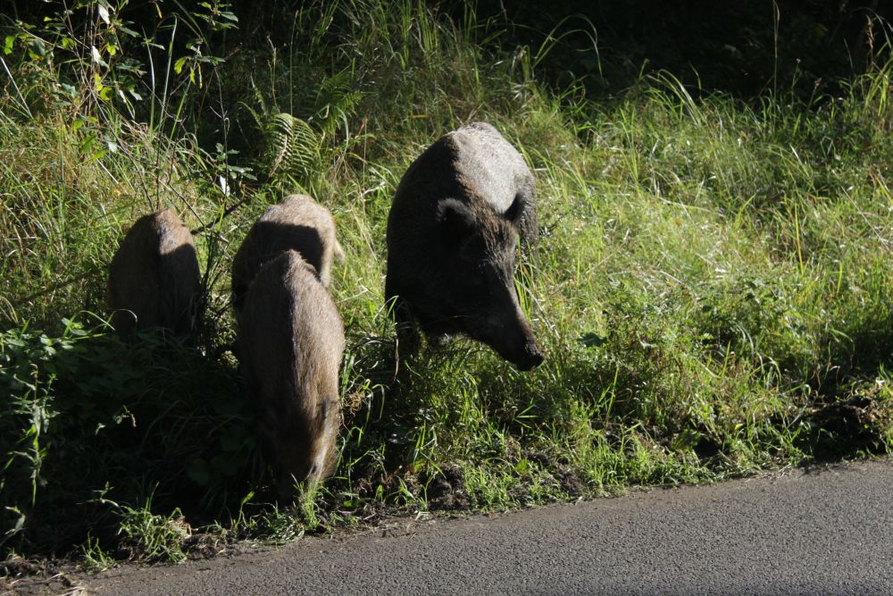 Moment, dann wurden wir von Wildschweinen, die auf uns