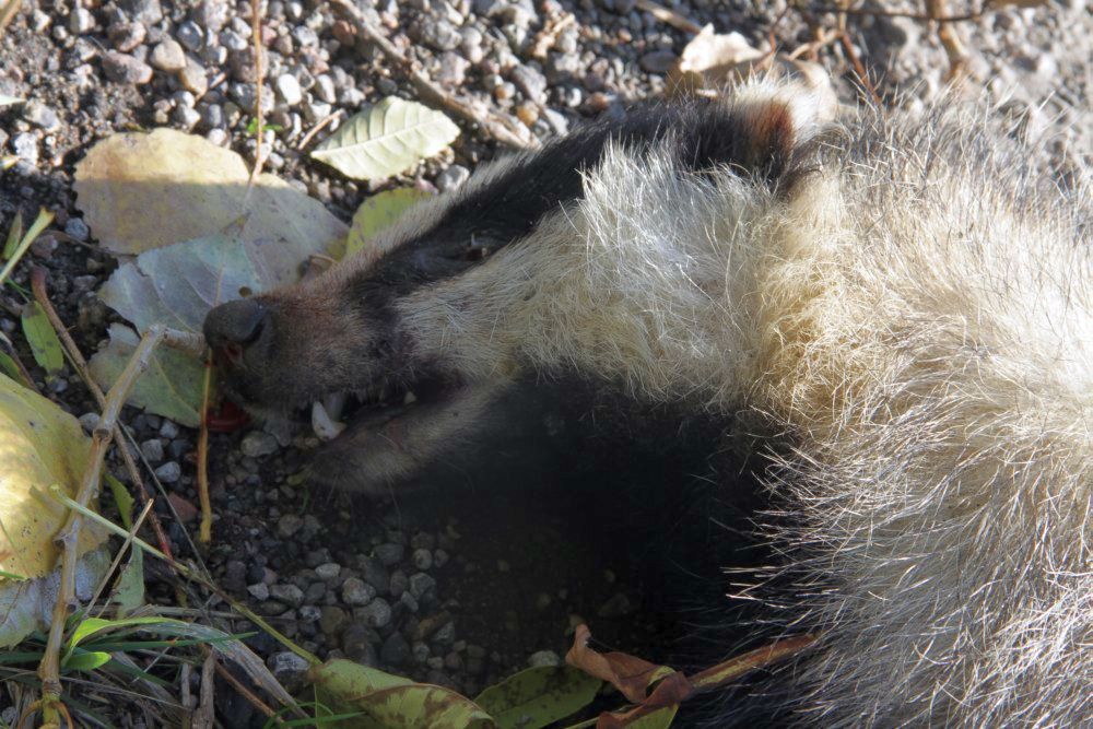 Vor ein paar Tagen sah ich aber meinen ersten Dachs. Totgefahren, leider, an den Straßenrand geschleudert, äußerlich unverletzt. Und was für ein Prachtbursche! Circa 80cm lang, rund wie eine Tonne auf kurzen Beinen, kräftige lange Beißerchen. Von so einem Tier möchte ich nicht angefallen werden...