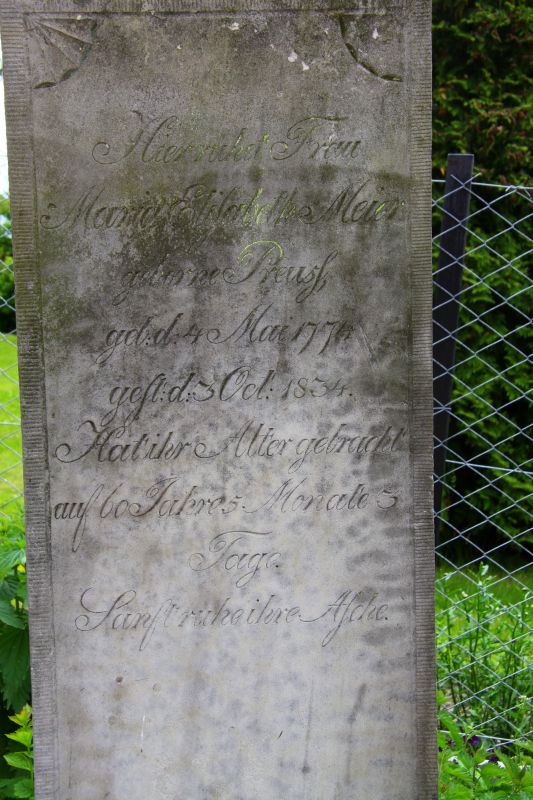 auf dem Marienauer Friedhof sind noch einige alte Grabsteine erhalten. Auf den beigefügten Fotos werden Vor- und Rückseite eines dieser Denkmäler gezeigt.