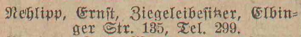 In den 1930er Jahren befand sich unter der Anschrift Elbinger Straße eine Ziegelei. Neben einigen Angestellten hatten auch etliche Arbeiter dort ihre Unterkunft. Unter anderem auch ein Kraftfahrer ... .