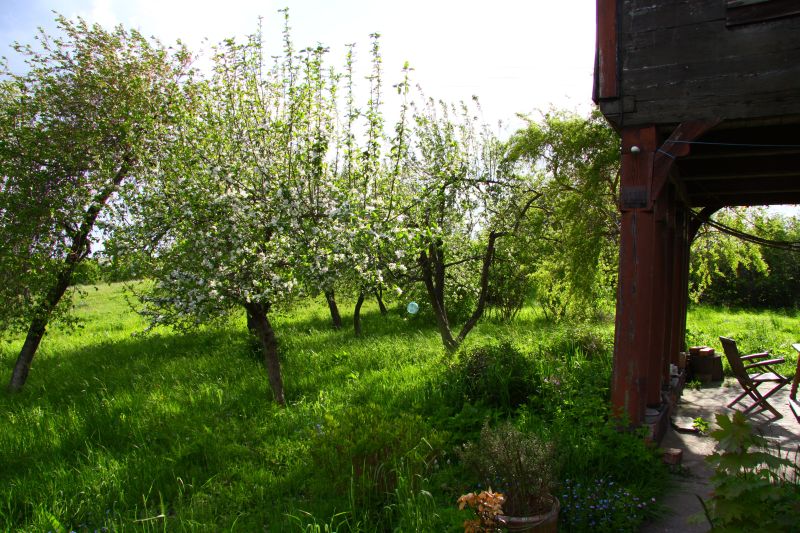 Die Gebäude liegen inmitten eines großen idyllischen Gartens. Es ist schade, dass nun auch dieses wunderschöne Vorlaubenhaus wahrscheinlich dem Verfall preisgegeben ist.
