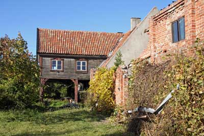 ich erhielt jetzt die ergänzende Information von einem Knoop-Vetter, dass das Haus vor drei bis fünf Jahren von einem mit einer Polin verheirateten Deutschen gekauft worden sei, der von der öffentlichen Hand erwartete, finanzielle Zuschüsse für die Restaurierung des Vorlaubenhauses zu erhalten ... wenn es jetzt leer steht, bedeutet das wohl, dass daraus wenig geworden ist ..