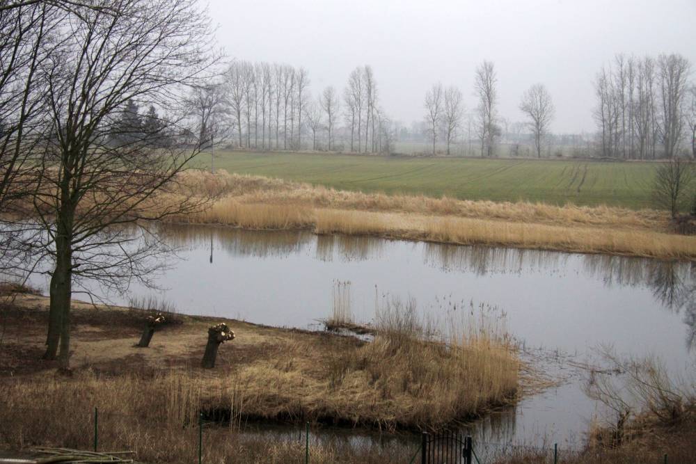 Ost: Blick über die Elbinger Weichsel. Die Felder auf der anderen Seite gehören zu Fürstenwerder, dahinter liegt Brunau und nach noch ein paar Kilometern befindet sich Tiegenhof.