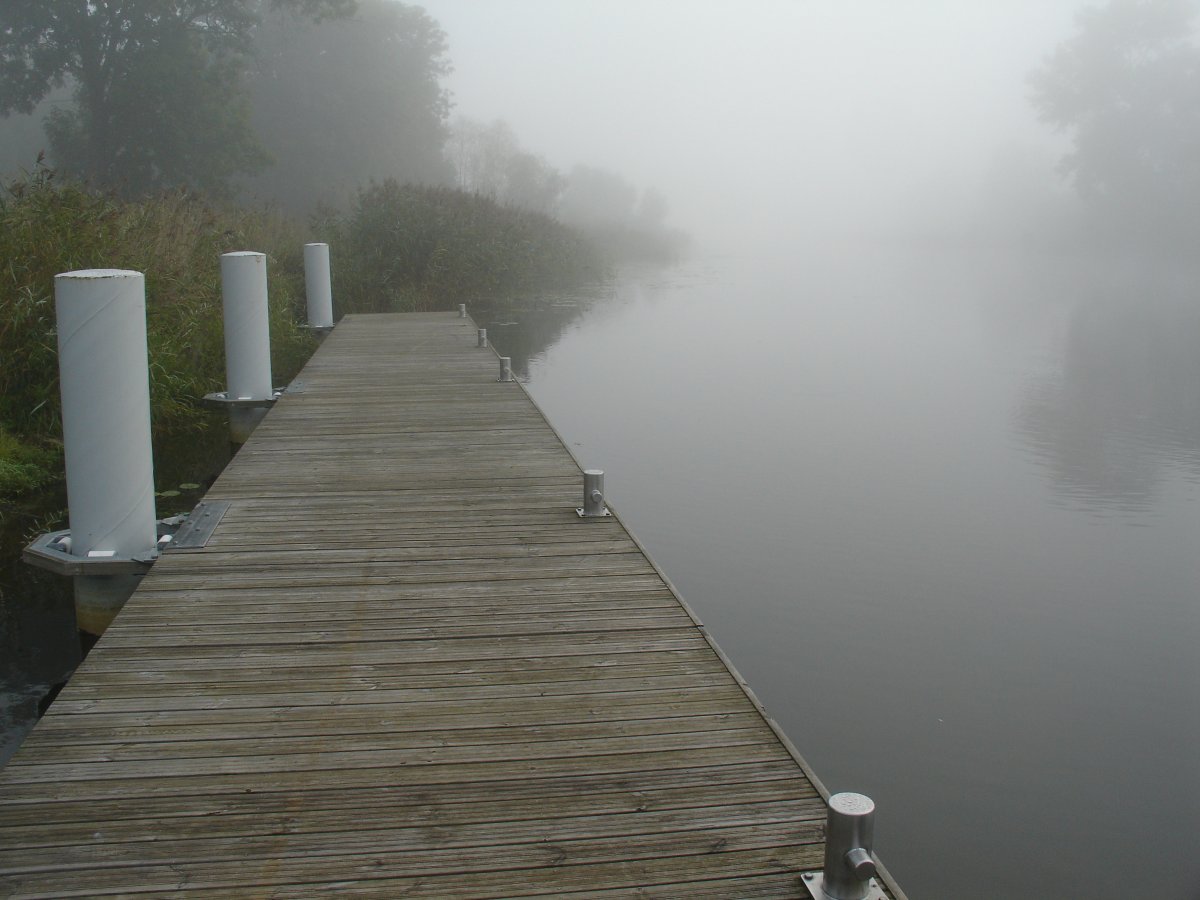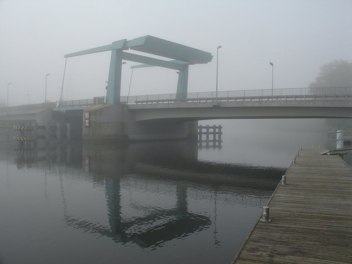 Hier einige Fotos, aufgenommen beim sich bereits lichtenden Nebel aus meinem Haus. Die Brücke wurde beim Morgenspaziergang vom Prinzlaffer Anlegesteg aufgenommen.