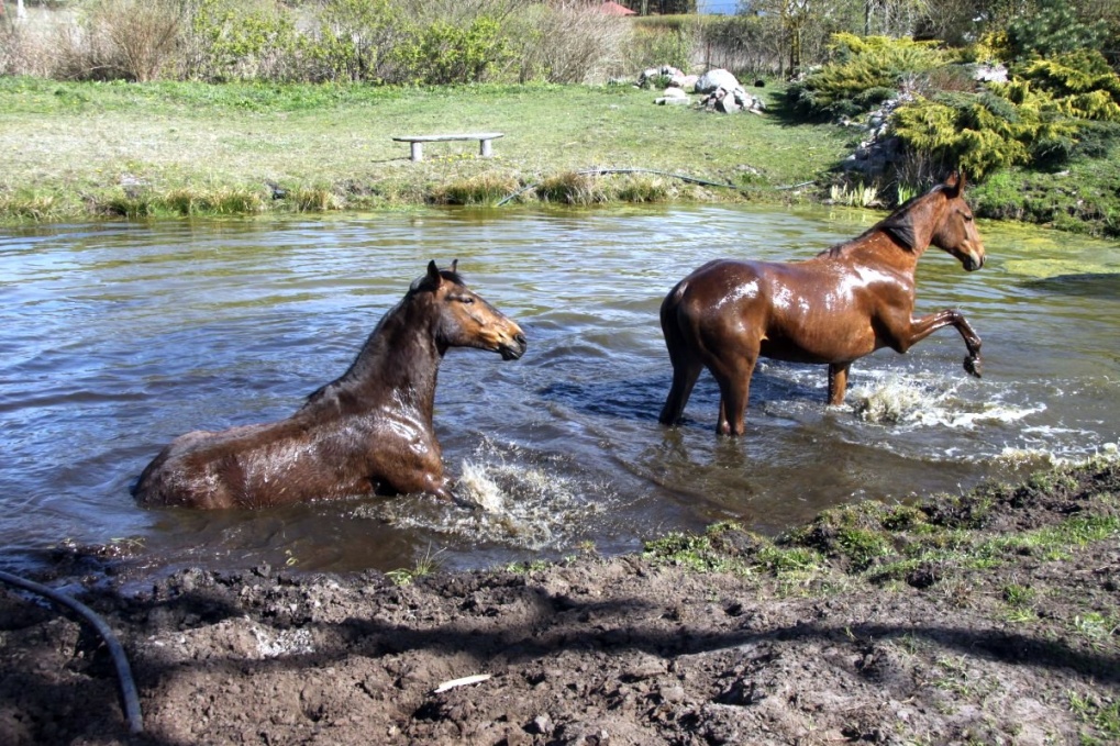 Hier eins der Badefotos, rechts der Trakehner.
